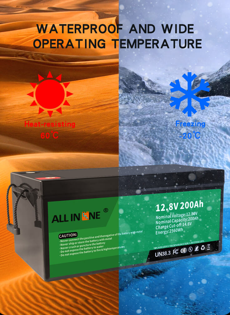 4. کام کرنے کا وسیع درجہ حرارت: LiFePO4 بیٹری میں درجہ حرارت کی حد درجہ -20 ° C ~ 60 ° C ہے۔