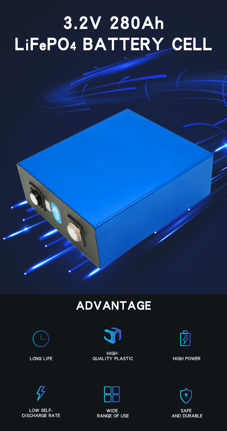 یہ UL مصدقہ 3.2V 280Ah LiFePO4 بیٹری سیل کے درج ذیل فوائد ہیں: