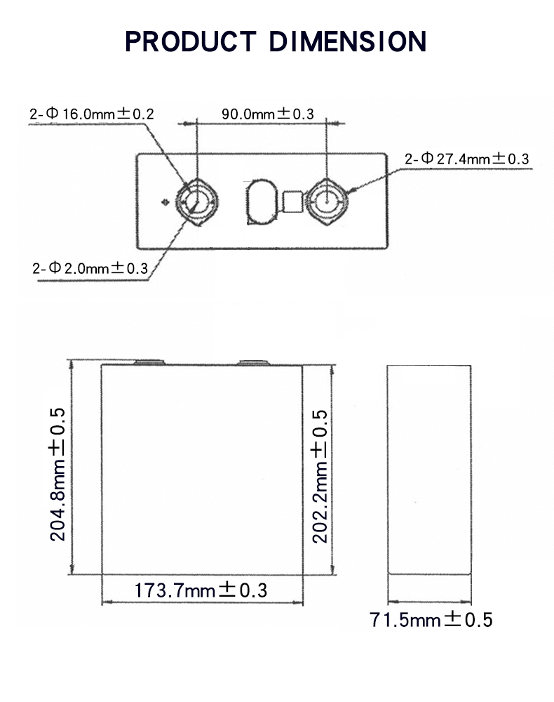 | طول و عرض (ڈرائنگ کا حوالہ دیں) | 71.5*173.7*204.8 ملی میٹر۔ |