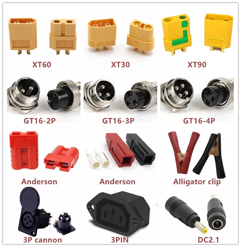 2. ڈسچارج کنیکٹر: نیچے دی گئی تصویر کے طور پر 12 قسمیں اختیاری ہیں، اگر درخواست کیے بغیر ڈیفالٹ کنیکٹر کے ساتھ ننگی کیبل یا سولڈرڈ فراہم کرے گا۔