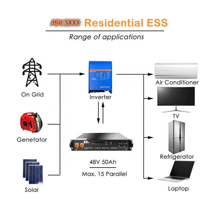 1.AIN2000 48v شمسی نظام کی بیٹری اعلی کارکردگی LFP سیل 3.2V 50Ah اور ای وی معیاری ڈھانچے کے ساتھ تیار کی گئی ہے تاکہ حفاظت اور بقایا خدمات کی زندگی کی ضمانت دی جاسکے۔