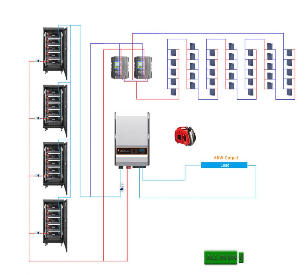 3.یہ ایک پلگ ہے اور ہائبرڈ انورٹر کے ساتھ 48v شمسی نظام کی بیٹری چلاتا ہے لہذا یہ انسٹال کرنا بہت آسان ہے۔