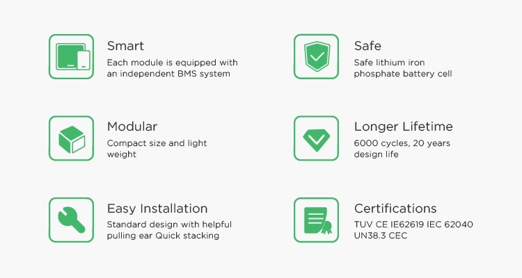 سرٹیفیکیشن اور سیفٹی اسٹارڈ | TUV / CE / EN62619 / IEC62040 / UN38.3 / CEC تسلیم شدہ | |