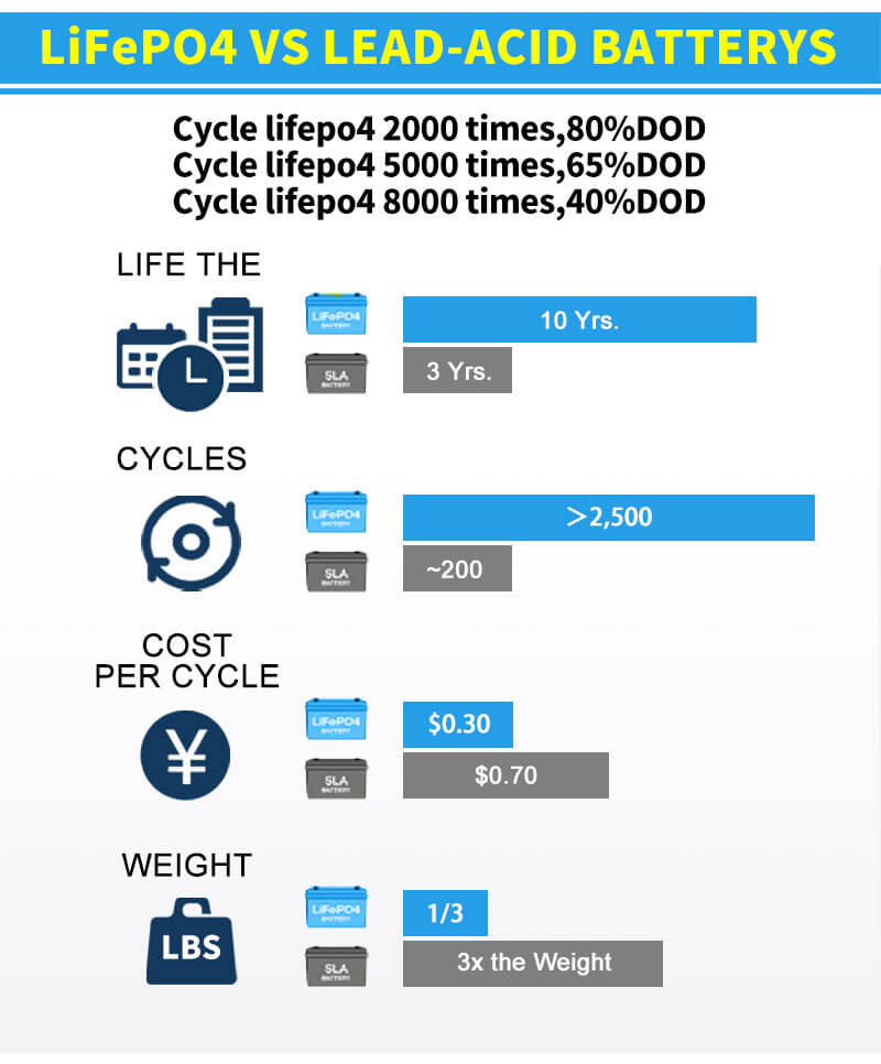 ighter ہلکا وزن: ایک موازنہ لیڈ ایسڈ بیٹری کے وزن میں سے 40٪۔ لیڈ ایسڈ بیٹریوں کے متبادل میں "ڈراپ اِن"
